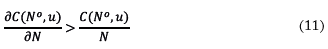 La capitalización de la renta es el mecanismo económico por el cual los productores incorporan al precio de las mercancías la parte correspondiente a los costos fijos de los rendimientos crecientes. Pueden hacerlo porque la economía urbana se basa en mercados de competencia imperfecta, donde cada empresa ejerce cierto poder de mercado espacial. En estas condiciones, la productividad generada por los rendimientos crecientes de los bienes públicos va a parar a los propietarios del suelo en forma de incrementos diferenciales de renta (Fujita y Thisse, 2013). Una ciudad con un producto X que es función de la población (X = F(Mf)X y una función de costo de ciudad que depende de la población y del nivel de utilidad, C(N, u), estrictamente convexa enfrenta el problema de optimización expresado en la ecuación 9: