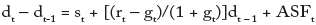 primero, st el cual es el déficit primario en el período t; segundo, el producto de la relación entre la deuda y el PIB, rezagada un período, y el diferencial entre la tasa de interés efectiva, rt, y la tasa de crecimiento nominal del producto, gt; y tercero, el término ASFt, el cual incorpora ajustes residuales de stocks y flujos4.