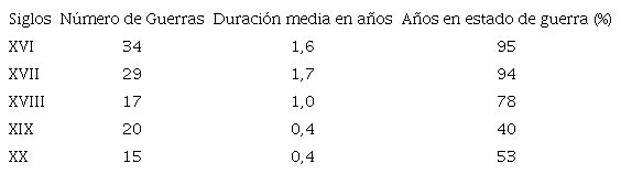 "La guerra dio origen al estado y el estado dio origen a la guerra"66. En esta breve frase se destaca la relación entre la formación del Estado moderno y la preparación para la guerra, si bien dicha relación no agota todos los factores potencialmente intervinientes67. Más aún, la guerra fue un atributo del horizonte europeo durante varias centurias (Tabla 2). La solidez institucional de la tributación fue un imperativo para que un Estado saliese airoso del campo de batalla. Sin recursos tributarios no habría acceso al endeudamiento y sin endeudamiento no habría sido posible financiar los ingentes gastos militares de las contiendas. En la práctica, la gestión de la deuda pública fue un tema clave en los prolongados períodos bélicos del siglo XVIII; y el crecimiento de la deuda terminó convirtiéndose en un indicador significativo de la modernidad de un Estado68.