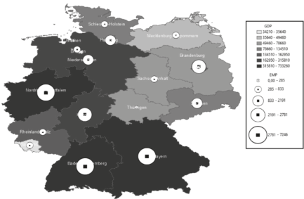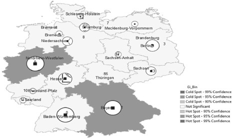 Similarly, in Germany, the regions with the most prominent clustering areas are Bavaria and North Rhine-Westphalia.