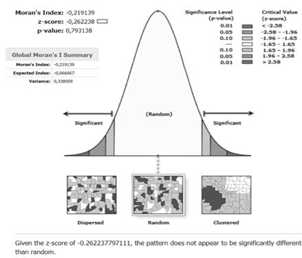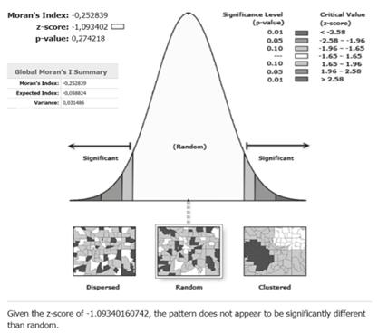 To analyze spatial patterns, the Getis-Ord General G technique has been employed. This spatial statistical method is used to identify spatial clustering or hotspots in data and assess spatial patterns. The Getis-Ord General G statistic measures the degree of spatial association among neighboring features, taking into account both the values of the features and their spatial arrangement. This technique can help pinpoint areas with spatially concentrated high or low values and assess the statistical significance of observed patterns.