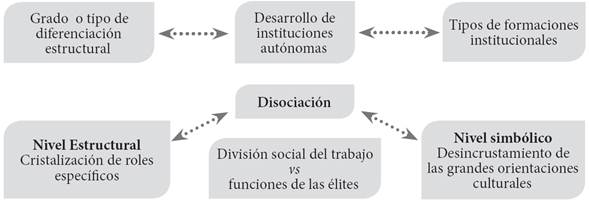 Lo anterior resulta ilustrativo para la teoría sociológica, porque permite distinguir entre la cristalización de los distintos papeles específicos a nivel estructural, el desencrustamiento de las principales orientaciones culturales a nivel simbólico, y la reestructuración de las condiciones de membresía. En el aspecto sociocultural, comienza una reestructuración y diferenciación del marco primordial adscriptivo, que va aparejado con los conflictos elementales sobre las elites y su función en relación con el nuevo orden establecido. Eisenstadt sostiene que la modernidad occidental es una segunda civilización axial.