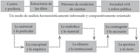 Por lo tanto, las investigaciones comparativas han demostrado que la modernidad latinoamericana no se interpreta mediante un tipo de modernización occidental hegemónica y homogeneizadora, sino que fue institucionalizada gracias a "una nueva versión del orden social y político" (Ibíd ., 2015).