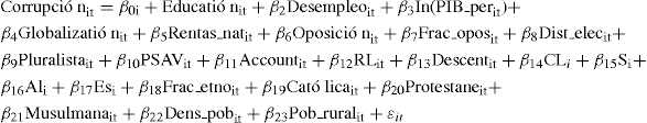 donde los subíndices it se refieren al país i en el año t, y εit es el respectivo término de error.