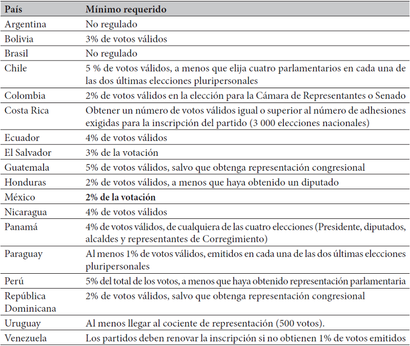 Esto se sumaba a otras evidencias que reflejan el bajo umbral electoral que tiene México en relación con otros países de América Latina (cuadro 2).