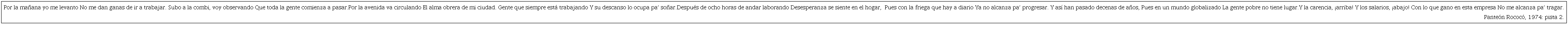 En el mismo tenor, las canciones de grupos como La Maldita Vecindad y los Hijos del Quinto Patio, mencionado por Manuel, no se caracterizan precisamente por ser canciones de rebeldía o de crítica al gobierno, pero sí tienen un contenido social, pues parten de una identificación con la clase popular y trabajadora. Ésta, y otras bandas similares como las hasta ahora aludidas, se distinguen por su contacto con el pueblo, ofrecen conciertos gratis en zonas populares, se solidarizan con las luchas populares, contienen en sus letras referencias a hechos cercanos a la vida cotidiana del habitante promedio mexicano. La siguiente canción de Panteón Rococó es un buen ejemplo: