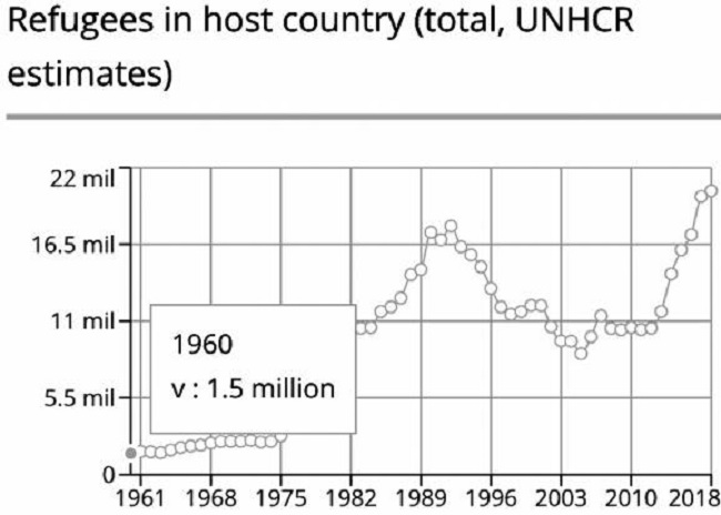 Si tenemos en cuenta que la población mundial en 1960 era aproximadamente de 2 900 millones de habitantes, es relevante percatarse que el millón y medio de personas refugiadas, sólo significa 0.05 % del total. Contrario a esto, si nos colocamos en los años inmediatos a la caída del Muro de Berlín (1989-1991), observamos un repunte extraordinario tanto en población, como en densidad: