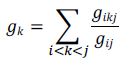 gij. N° de distancias geodésicas desde el nodo "i" hasta el nodo "j" gikj.