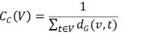 Donde: dG(v,t)=la distancia geodésica (o enlaces geodésicos - distancias euclídeas o rutas mínimas) entre el actor "v" y "t"