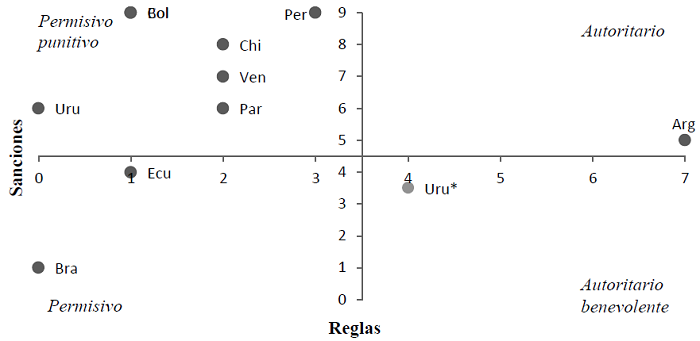 El complemento de estos mandatos son las sanciones que la norma estipula se apliquen a quienes los trasgredan. Como se indicó, a partir de observar cómo se combinan estos dos aspectos se proponen cuatro tipos ideales de estilos de regulación: autoritario, autoritario-benevolente, permisivo-punitivo y permisivo.