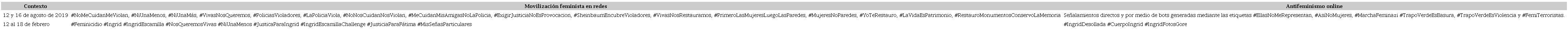 De manera sintética se muestra en el siguiente cuadro la amplificación en las redes sociales y los principales hashtags utilizados en las dos coyunturas de protesta antes mencionadas.