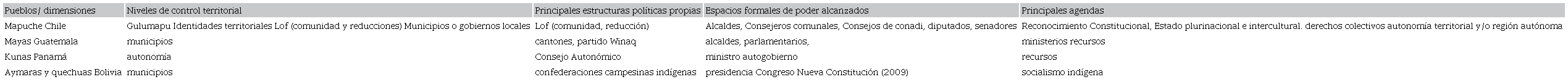 Los estudios sobre estructuras de poder yuxtapuestas en poblaciones indígenas de América Latina se caracterizan por centrar el análisis en una serie de organizaciones, movimientos e instituciones étnicas y culturales paralelas a los Estados nacionales, que perviven en el subcontinente desde el régimen colonial (Martínez Cobo, 1987). Se trataría de formaciones políticas presentes en áreas geográficas con historia indígena, tal como da cuenta el caso maya en México y Guatemala, los kunas en Panamá y el Darién colombiano, los quechuas y aimaras en la zona andina, o los mapuche en Chile y Argentina (Bonfil, 2005; Stavenhagen, 2004). El fenómeno político tiene sus antecedentes en el colonialismo temprano de los siglos XV y XVI, con la formulación de las Leyes de Indias tras el etnocidio del Caribe, junto al resultado tardío de la paz del k’iché maya en 1540. Sobre esta base se alcanzó el reconocimiento de la autoridad indígena, más allá de la segregación que implicó la reducción de la población a “pueblos de indios”, o a la instalación de la institución de la encomienda (Valenzuela, 2014).