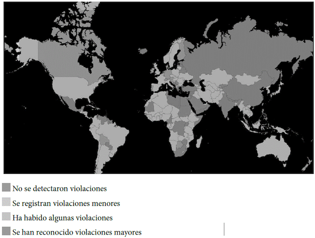 Como puede verse en este mapa, las violaciones han sido menores en Europa, sobre todo en la parte occidental, y en algunos países de América Latina, mientras que son mayores en naciones asiáticas y africanas. México es uno de los pocos países del subcontinente Latinoamericano donde se han registrado violaciones mayores a los estándares democráticos. Eso no debiera extrañar, dado que en el país las autoridades no han establecido con claridad límites temporales a las medidas de emergencia, las decisiones se han concentrado en el Poder Ejecutivo federal sin darle participación ni a poderes subnacionales ni al legislativo y sin propiciar la participación de organizaciones sociales y de la ciudadanía y porque las propias autoridades han fomentado una campaña de desinformación respecto al padecimiento.