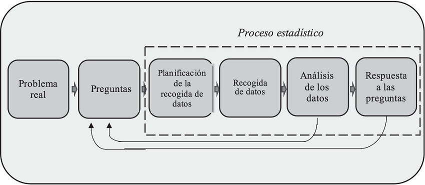 Este proceso va más allá, y tiene el objetivo de dar a conocer la realidad para una toma de decisiones basada en información fiable y relevante. Tal como se ve en la Figura 1, el proceso estadístico está inserto inexorablemente en el proceso de investigación.
