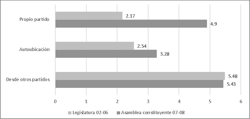 Una vez que anticipamos conclusiones en torno a la presencia del proceso de polarización de la contienda, corresponde evaluar si después de los episodios de protesta se verifican algunos cambios en la ideología de la élite. El abordaje empírico iniciaría por plantearnos qué instrumentos nos permiten observar oscilaciones en los posicionamientos ideológicos de la élite política. Por principio, señalamos que los alcances de esta investigación son exploratorios, por lo que se extraerá evidencia de datos e indicadores que revelen cambios en estos posicionamientos sin llegar a explicaciones de la implicación.