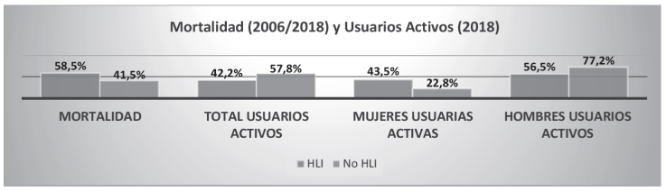 Los pocos datos oficiales sobre prevalencia de VIH y mortalidad por SIDA en el país y en el estado de Oaxaca no nos permiten conocer cómo la población indígena está siendo afectada por la epidemia. Con el objetivo de obtener datos cuantitativos -complementarios a los etnográficos- sobre esta problemática, presentamos los siguientes resultados de un análisis estadístico descriptivo realizado con tres bases de datos proporcionadas en el CAPASITS: a) los usuarios activos desagregados por etnicidad (HLI) y género; b) el porcentaje comparado de personas cuyo test de detección en el Centro fue positivo al VIH en función de si son o no HLI y de si son migrantes HLI o no, y c) el porcentaje comparado de personas que eran usuarias del CAPASITS, tomaban el TAR y fallecieron por comorbilidades fruto del abandono o el no apego a él, desagregado por etnicidad (HLI) y por género.