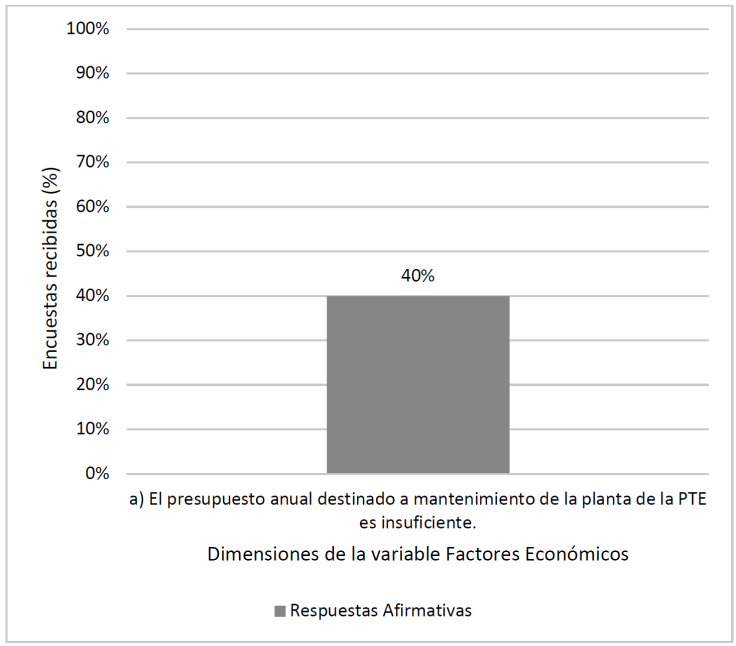 Los datos mencionados y las propuestas realizadas deben ser abordados en el contexto de otro factor incluido en la encuesta: el económico, en tanto se estima que éste podría estar influyendo en la real posibilidad de aplicación de las innovaciones tecnológicas y de los saberes científicos adquiridos por la comunidad internacional. En el Gráfico 5 se encuentra representada dicha variable, y la dimensión a través de la cual se la busca medir (la suficiencia del presupuesto anual destinado al mantenimiento de la PTE).