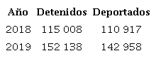 Los efectos de estos procesos de contención territorial de la migración en la frontera sur se mostraron en el claro incremento de un año (2018) a otro (2019) de los registros de detenciones y deportaciones de poblaciones en tránsito del NdC por México en situación migratoria irregular (UPM, 2020 y 2019) (ver cuadros 3 y 4). De 115 008 detenciones de migrantes del NdC registradas a nivel nacional en 2018 (UPM, 2019), hubo un alza muy acentuada a 152 138 para el año 2019 (ver Cuadro 3) (UPM, 2020). En las deportaciones se observó una tendencia similar: de 110 917 en el año 2018 (UPM, 2019), subió de manera drástica a 142 958 para 2019 (ver Cuadro 4) (UPM, 2020).