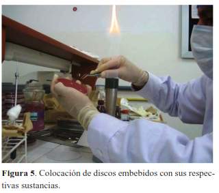 La disposición de los antibacterianos en la placa petri se muestra en la figura 6.