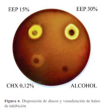 En el presente estudio de tipo experimental se buscó evaluar el efecto inhibitorio in vitro del EEP al 15% y 30% sobre cepas de Lactobacillus acidophilus con gluconato de clorhexidina al 0,12%.