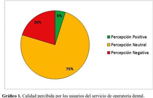 En conclusión, la calidad percibida por el paciente o usuario de la Clínica Docente, relacionada a la manera en la cual el servicio es prestado, considerando su entorno físico y trato profesional, es en su mayoría negativa o neutral, mientras que la calidad técnica de los tratamientos, referida a la exactitud del diagnóstico y a la adherencia de los procedimientos a protocolos de atención, tienen una valoración bastante positiva. Esto describe que la calidad es un término bastante amplio que no sólo debe medirse en términos de satisfacción del servicio (basado en su percepción: expectativas y experiencias), sino que debe valorar, entre otras variables, las vinculadas a la calidad técnica de los procedimientos clínicos, ya que son estos los que, finalmente, repercuten en la recuperación de su salud del individuo o el abordaje de su enfermedad.