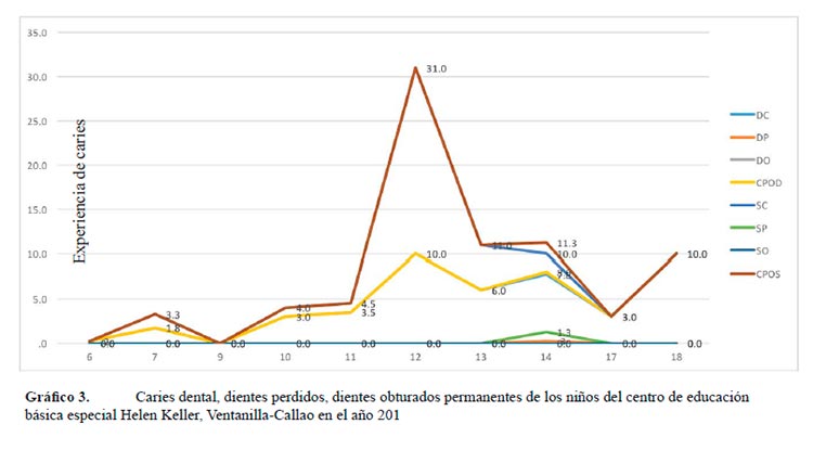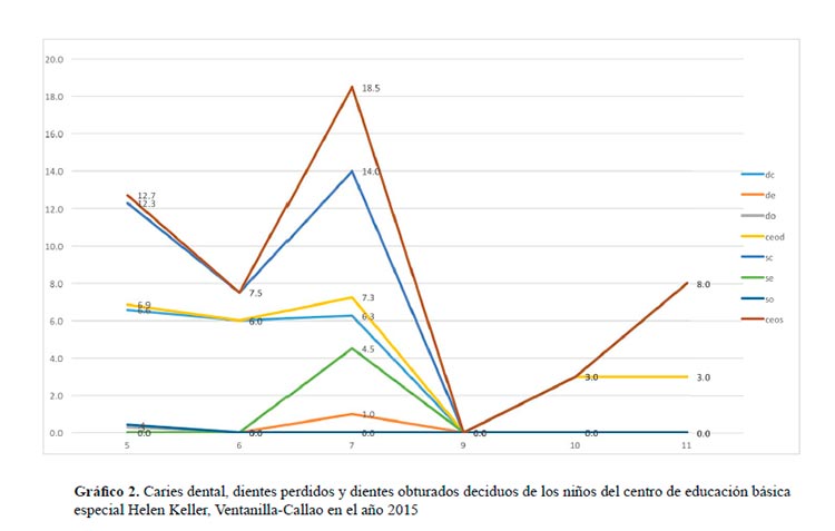 Es importante resaltar que no se han realizado investigaciones en el Perú sobre caries dental en las personas con necesidades especiales. En Nigeria, Oredugba et al., encontraron un índice de ceod de 0,7 y de CPOD de 0,4 en 54 personas de 3–26 años (10). En Estados Unidos, Gaçe et al., hallaron que la caries dental en los dientes permanentes fue alta (85,3%, CPOD=4,9) así también para los dientes decidua (72%, ceod=4,9), habiéndose realizado esta investigación en nueve colegios de niños especiales (2).