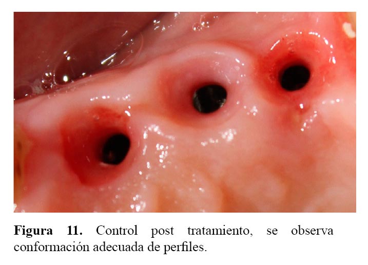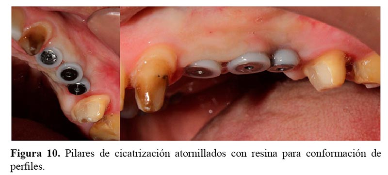 Una vez obtenidos los diámetros adecuados proceder a atornillar los pilares de cicatrización sobre los implantes (figura 10).