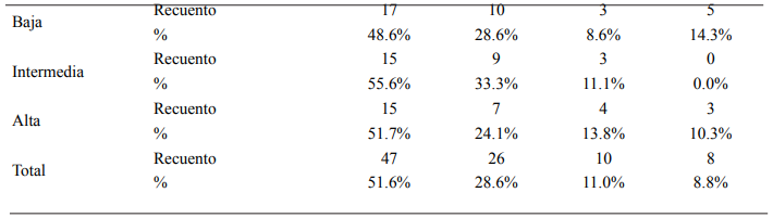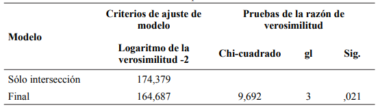 Para el análisis estadístico descriptivo se utilizaron las tablas de contingencia y para la prueba de las hipótesis se utilizó la prueba de regresión logística multinomial, teniendo en consideración que la variable en estudio era cualitativa de escala ordinal.
