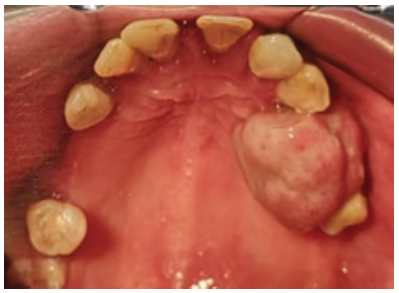 Shamim et al., en un análisis de 244 casos de lesiones gingivales, descubrió que las lesiones no neoplásicas representaban el 75.5% de los casos, siendo el GP oral la lesión más frecuente, representando el 52.71% de los casos (12). Estas lesiones se limitan a la encía y rara vez involucran el hueso alveolar (15). Aunque a veces, puede estar asociada con la erosión ósea de la corteza labial (1,17), especialmente los GP de larga data.