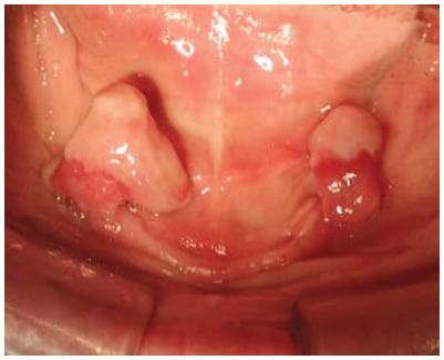 De los tres GP reportados, el del maxilar superior medía más de 2.5 cm, la literatura considera a estos GP como “gigantes” (9,15); y se sugirió que algunos casos están relacionados con pacientes sistémicamente comprometidos, aunque se encontraron publicaciones de GP gigantes en pacientes sanos, incluido gestantes (19).