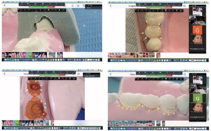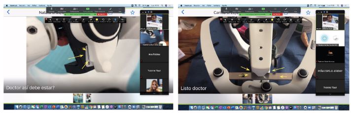 La experiencia de usar una plataforma de video conferencia como el Zoom ha sido muy valiosa como instrumento para poder generar aprendizajes significativos en los procedimientos restauradores directos e indirectos. Las herramientas que posee lo hace altamente versátil para poder realizar instrucciones a los alumnos, así como para poder realizar indicaciones precisas y claras en cuanto a los pasos procedimentales que el estudiante debe realizar según la rutina establecida. Una experiencia inédita en simulación con maqueta-UPCH vía remota ha sido realizada con singular éxito. La herramienta pizarra y anotar del Zoom ha demostrado su total utilidad asi como la herramienta de sección de grupos. Tanto docentes como estudiantes usan con mucha frecuencia la laptop como el principal medio de interacción. Para lograr una comunicación efectiva la fotografía y el envío usando aplicativos de imagen y audio fueron muy valiosos para poder cerrar un círculo de comunicación efectivo, nos referimos al aplicativo de mensajería instantánea WhatsApp (13).