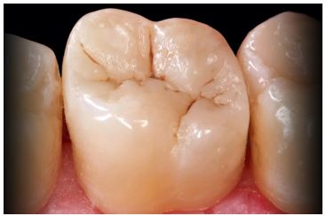 La restauración del cuerpo dentinario para este caso fue realizado con una resina compuestas bulk- fill de baja viscosidad o fluida (SureFil SDR flow, Dentsply Caulk, USA), la que según estudios como el de Kumagai et al., ha demostrado que la aplicación de este tipo de resina compuesta sobre el piso gingival de grandes preparaciones clase II MOD, podría mejorar la resistencia adhesiva de la restauración, sobre todo si ésta incluye la aplicación de SureFil junto a la estratificación oclusal del esmalte con una resina nanoparticulada (19).