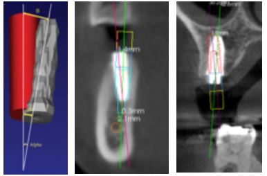 Se muestra uno de los casos donde se detectó desviación en el sentido mesiodistal a nivel apical de 0,1 mm y en el sentido vestíbulo palatino no se vió desviación con relación a lo planificado (figura 5).