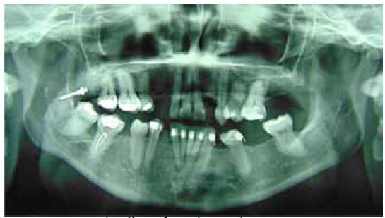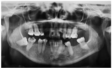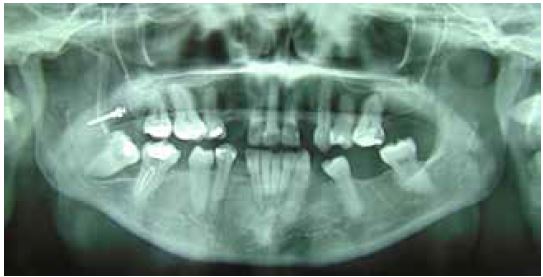 Paciente de sexo femenino que acude al servicio de Cirugía Oral para la aplicación de técnica ortoquirúrgica consistente en verticalización de diente 48. En la actualidad, afirmó no presentar sintomatología asociada en la zona, ni alteraciones en órganos y sistemas, antecedentes quirúrgicos de relevancia o estar en tratamiento médico. Al examen intraoral se evidenció anodoncia de 48, destrucción coronal completa de dientes 22 y 34, caries cavitacional en diente 47 y gingivitis marginal generalizada.