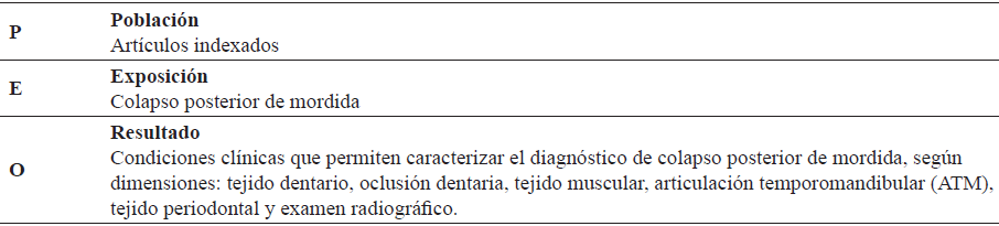 Los criterios de Inclusión fueron los artículos originales de tipo reportes de caso y series de caso publicados en revistas indexadas internacionalmente que describan las características clínicas y radiográficas del colapso posterior de mordida.