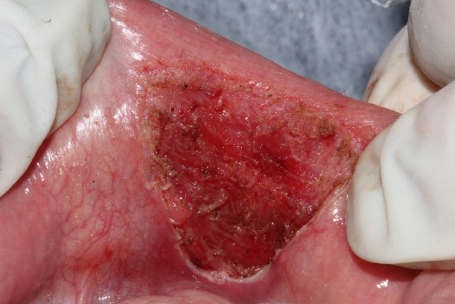 In the present case, there was no need for suture, corroborating the study by Concepción et al., (16), who aimed to report the main findings regarding the use of diode laser for the treatment of soft tissue injuries. Among the main information, it was reported that, in none of the cases found, the need for suture was reported.