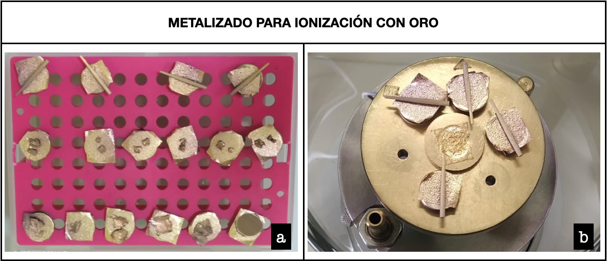 Una vez obtenidas las muestras acondicionadas y las muestras control, se colocaron en la máquina de prueba universal (Maquina digital de ensayos universales LG CMT-5L7419 Korea) con una carga de 250N. Cada muestra se sometió a una prueba de flexión de tres puntos, la cruceta estuvo en el medio entre dos soportes con un tramo de 10 mm, a una velocidad de 1mm/min. Para el análisis microtopografico de los postes de fibra de vidrio, previamente acondicionados fueron observados usando un microscopio electrónico de barrido (MEB, FEI, Inspect S50), se colocó sobre una tableta de latón recubierta con oro pulverizado para tomar las micrografías (figura 3 y figura 4).