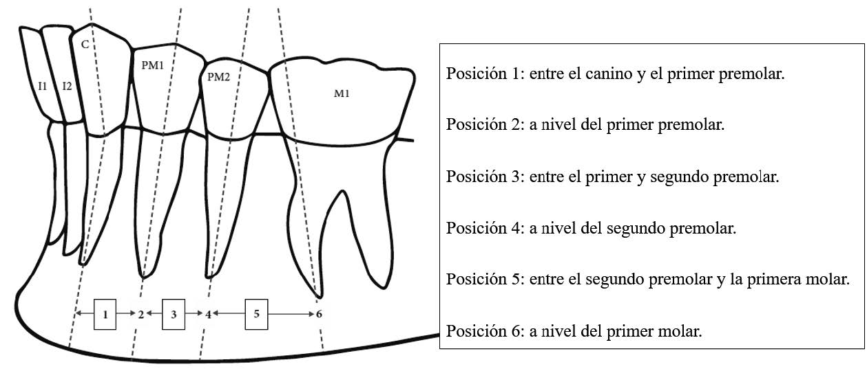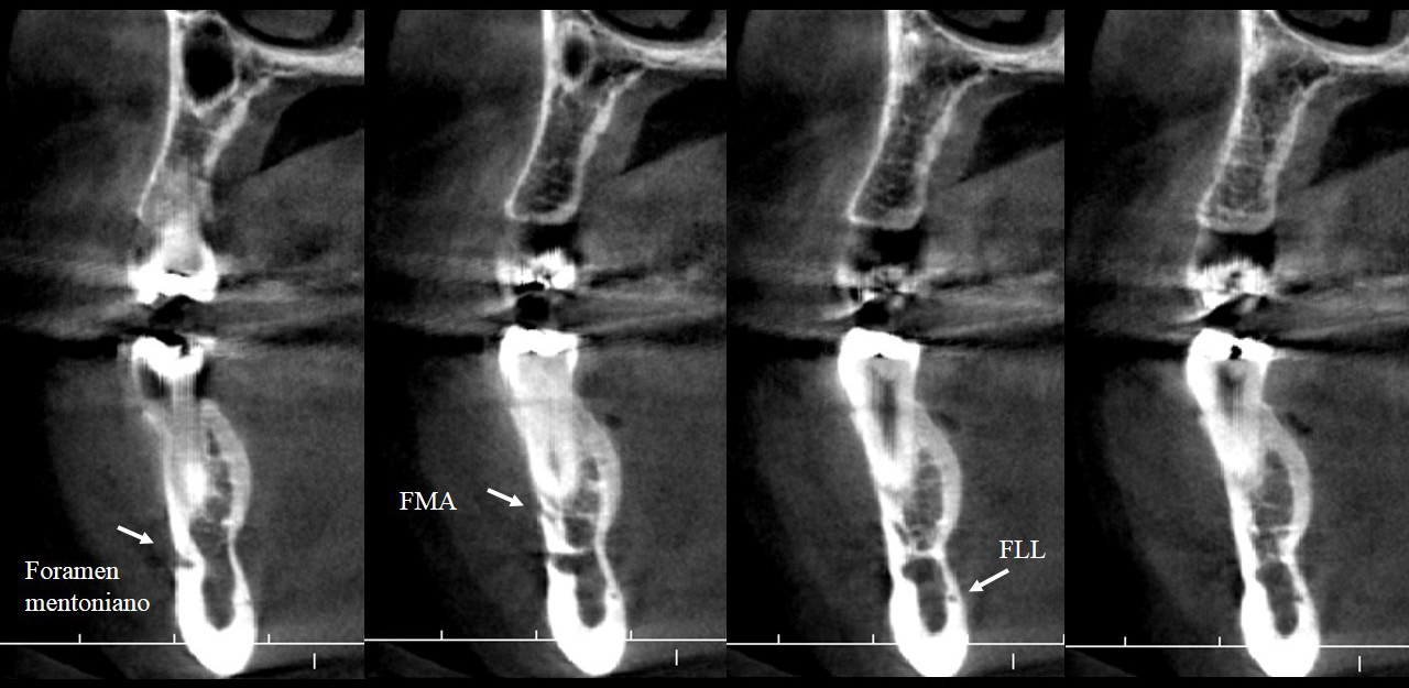 La posición del FM ha sido estudiada por muchos autores, se encuentran estudios macroscópicos en mandíbulas secas (9) y estudios mediante diferentes técnicas imagenológicas como: radiografías panorámicas (10), radiografías periapicales, resonancia magnética, tomografía espiral multicorte, ecografía y más recientemente mediante tomografía computarizada de haz cónico (TCHC) (11).