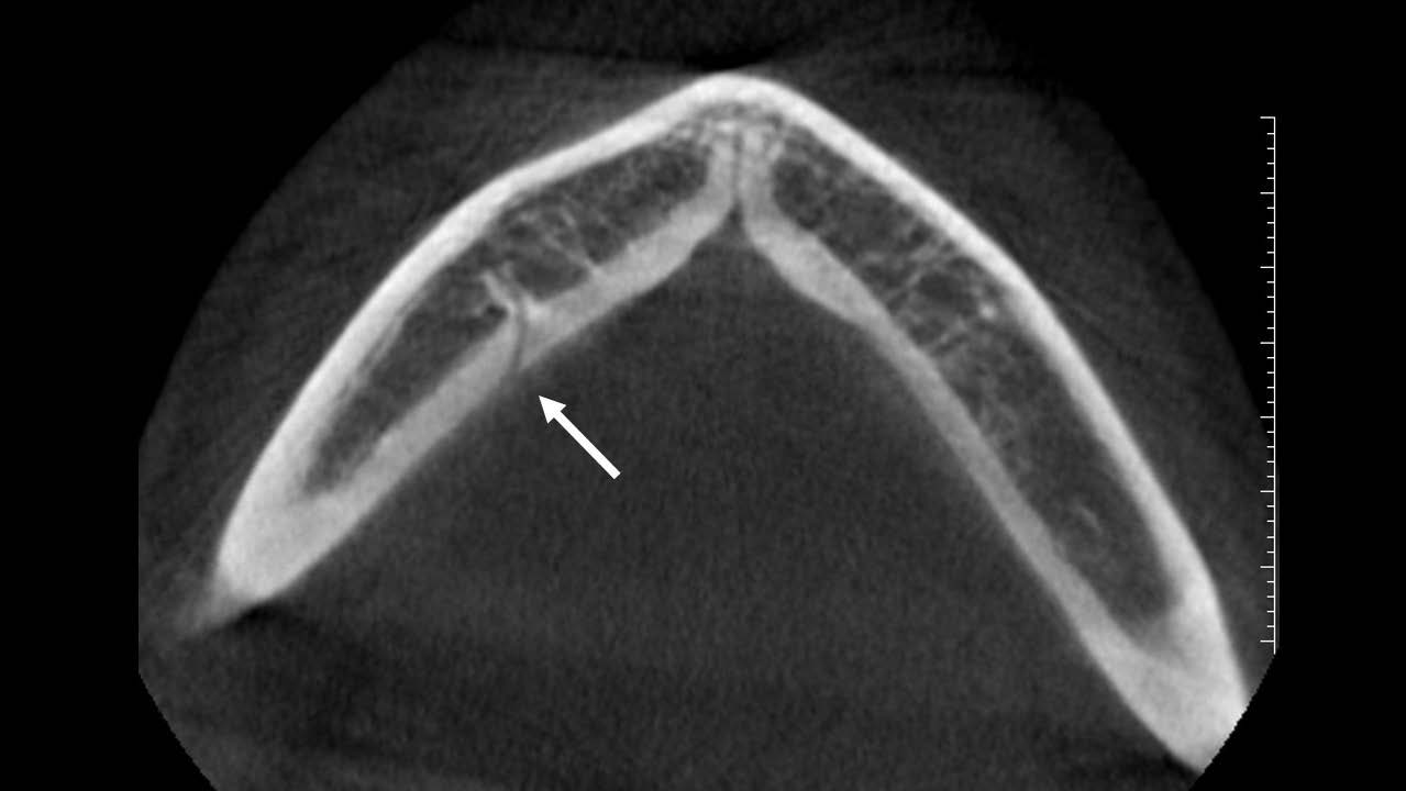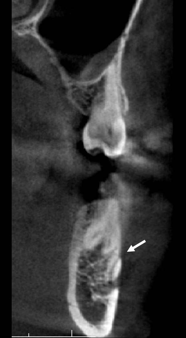 La mandíbula se origina del primer arco braquial, tiene una osificación mixta y su crecimiento es con dirección hacia abajo y adelante (1). El nervio dentario inferior ingresa a la mandíbula a través del foramen mandibular hacia el conducto dentario inferior (CDI). Se ramifica en dos nervios, el nervio incisivo que continúa por el conducto incisivo y el nervio mentoniano que emerge por el foramen mentoniano (FM) dando suministro sensorial al mentón, labio inferior y encía vestibular de los dientes anteriores del mismo lado de la mandíbula (2, 3,4).