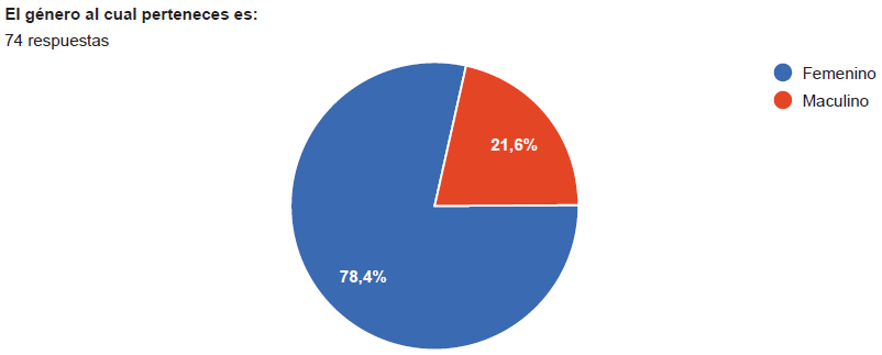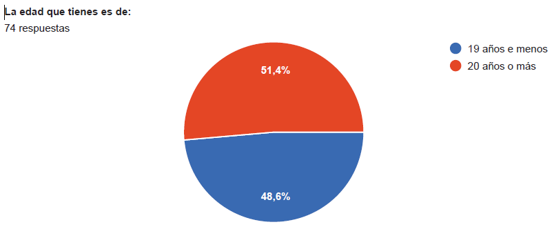 Del total de 104 alumnos que participaron de la dinámica de juego, 74 de ellos (77 %) respondieron de forma voluntaria la encuesta sobre percepción de la actividad. 78,4 % de los alumnos que respondieron la encuesta fueron mujeres y 21,6 % hombres (figura 1). 51.4 % fueron alumnos mayores de 20 años y 48.6%, menores de 19 años (figura 2).