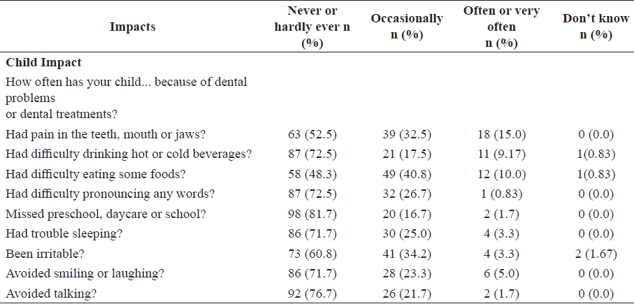 Some systematic reviews demonstrated that lower children’s age and gender (girls vs boys) were associated with a negative impact on OHRQoL among children (19,20). Nevertheless, in the present study, we did not obtain that association.