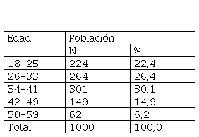 En la tabla 1, que corresponde a los grupos etarios, se muestra una edad media predominante de 34-41 años, con un total de 301 radiografías (30,1 %), seguido de las edades de 26-33 años, con un total de 264 radiografías (26,4 %).