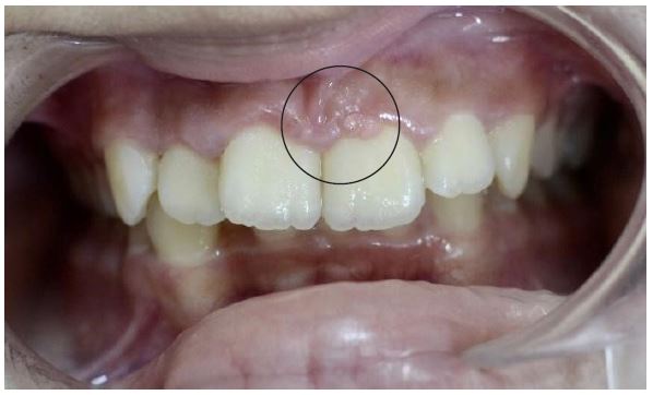 Se trata de una paciente femenina de 11 años de edad, cuya madre refiere que la enfermedad inició dos meses antes de acudir a la consulta odontológica, cuando observó un aumento de volumen en la encía. Se describe como asintomático, no sangrante, y que no remitió ni observó tampoco cambios en su volumen, razón por la cual acude a consulta para su evaluación.