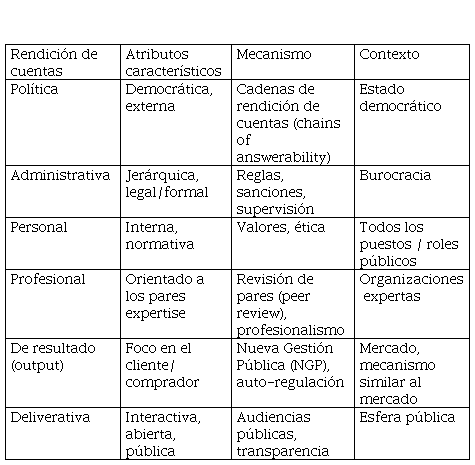 La rendición de cuentas debería implicar la transparencia y sujeción a la ley de los entes gubernamentales, pero también de las alianzas o empresas público-privadas; el conocimiento de las posibles consecuencias legales para actores públicos, sociales y privados; que en todos los procesos decisorios, ya fueran gubernamentales o no gubernamentales, se pudiera recurrir a procedimientos de supervisión y –en su caso– de re-consideración; que jueces y / o cuerpos colegiados puedan reconsiderar y/o revertir decisiones que afectan el interés público; y, en general, que todo actor o institución pública, social o privada que cometa un delito pueda ser llamado a cuentas y sancionado de manera proporcional a su responsabilidad (Considine y Afzal, 2011). La rendición de cuentas es, entonces, un sistema que incluye diversas dimensiones e instrumentos, según se puede ver en la tabla 1.