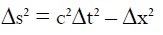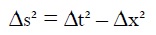 Esto es: [Intervalo espacio-tiempo]2 = [separación en el tiempo]2 – [separación en el espacio]2. La ecuación también se formula así: