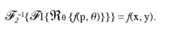 Esta transformada, que se simboliza como R siempre y cuando la integral de línea exista para cualquier recta L cuya ecuación sea xcos( θ ) + y sen( θ ) = p. Para las tomografías, f es una función que da información de cada punto (x, y) del cuerpo en estudio. El resultado de la Transformada de Radon se puede ver en la siguiente figura 3: