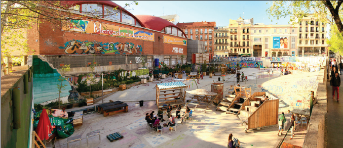 En un reciente encuentro en España de algunos de los colectivos de jóvenes arquitectos más influyentes del país,56 se habló precisamente de la necesidad de ofrecer mediante la arquitectura un espacio para la representación de los antagonismos57 sin neutralizarlos y sin favorecer un consenso (véase imagen 3). Algunos de estos colectivos participan en la gestión del Campo de la Cebada en Madrid, un espacio que adquiere multitud de configuraciones, una máquina urbana que permite a diversos grupos sociales expresarse y ser representados en su espacialidad.