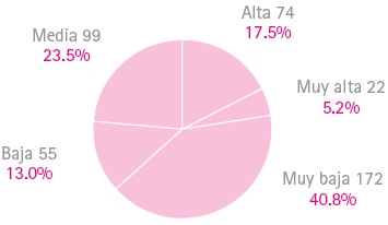 El Consejo Estatal de Población en Jalisco (COEPO) generó cifras de marginación a nivel de lo que se conoce como Área Geoestadística Básica Urbana (AGEB),28 lo cual permite ubicar geográficamente las zonas con más carencias y de prioritaria atención dentro del municipio.29 Así, en Zapopan se tiene que existen 422 AGEB urbanas, de las cuales 22 están clasificadas con marginación “muy alta” y 74 con “alta” (Gráfico 3). La localización de las AGEB con “muy alta” marginación se concentra principalmente en el norte en la zona conocida como Las Mesas, aunque también hay “alta” marginación en el área de Santa Lucía, en San Juan de Ocotán y hacia el sur, en las faldas del cerro de El Colli y en colindancia con el bosque de La Primavera.