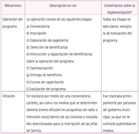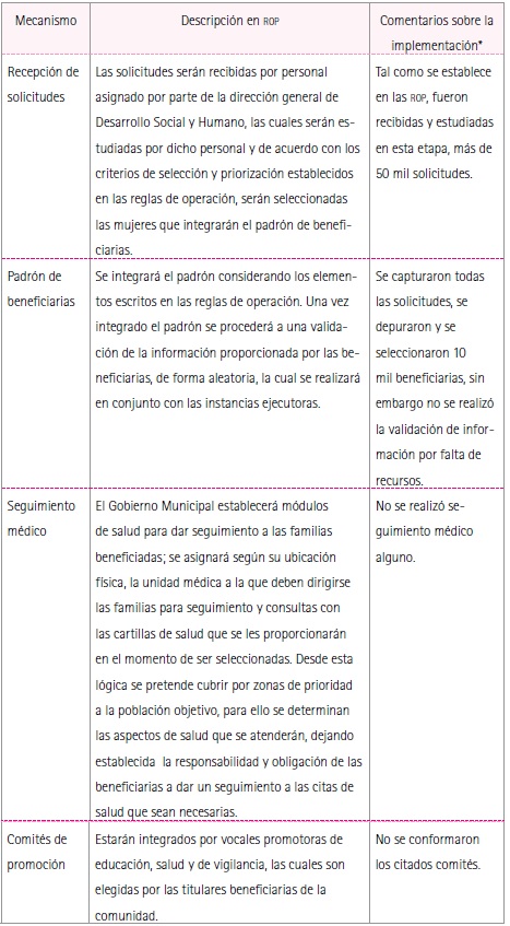 Sin embargo, las reglas de operación fueron difíciles de cumplir,35 puesto que surgieron situaciones no previstas y tuvieron que darse cambios durante su implementación.36 Con todo, la Dirección General de Desarrollo Social y Humano se encargó de ejecutar el programa, para lo que se valió principalmente de la Dirección de Programación, que se ocupó de su diseño y de la conformación del padrón de beneficiarias. Asimismo, el Instituto de la Mujer Zapopana fue la instancia encargada de operar el programa.