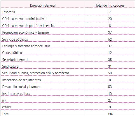 La dirección de Calidad y Planeación de Proyectos, área entonces dependiente de la Oficialía Mayor Administrativa, coordinó la creación del Sistema de Indicadores Zapopan (SIZ), mismo que en 2009 estaba conformado por cerca de 400 indicadores (Tabla 4), siendo las direcciones de Desarrollo Social y Humano, Servicios Públicos y Seguridad Pública las que operaban un mayor número.45